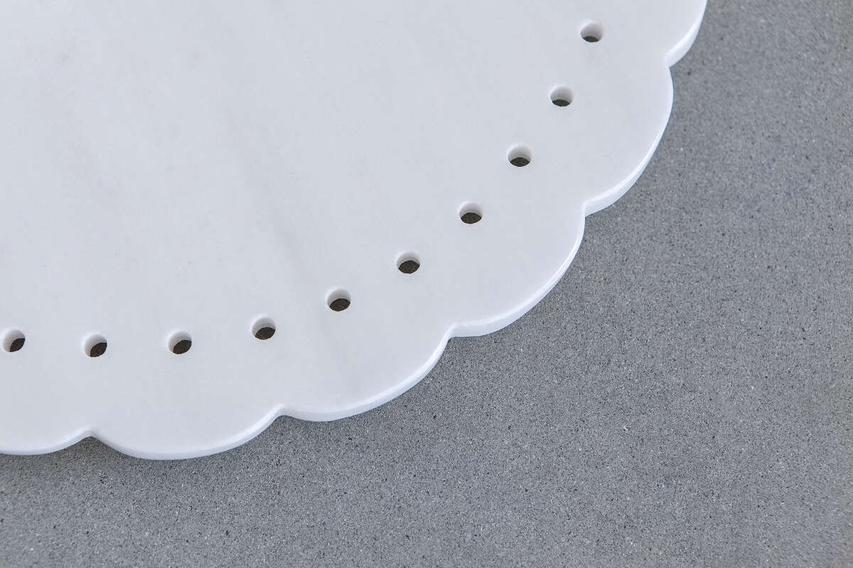 Μοναδικές μαρμάρινες επιφάνειες, με χαρούμενες δαντελωτές λεπτομέρειες, αποτελούν την αγαπημένη συλλογή Laced. Οι χρήσεις των αντικειμένων είναι απεριόριστες. Χρησιμοποιήστε τη φαντασία σας και αυτοσχεδιάστε! Για οδηγίες φροντίδας, πατήστε στο σταυρό στο τέλος της σελίδας.