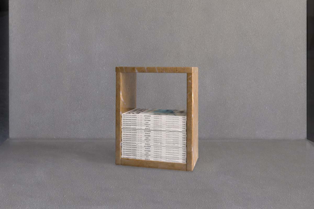 Χειροποίητo side table από μάρμαρο που μπορεί να χρησιμοποιηθεί για αποθήκευση περιοδικών. Επικοινωνήστε μαζί μας σε περίπτωση που επιθυμείτε διαφορετική επιλογή μαρμάρου.