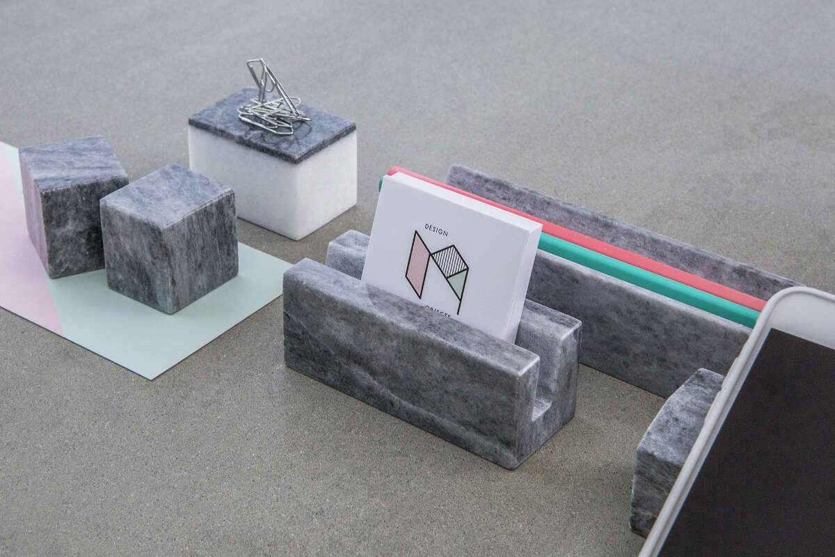 Σετ από 6 διαφορετικά αντικείμενα για το γραφείο, φτιαγμένα από γκρι μάρμαρο.