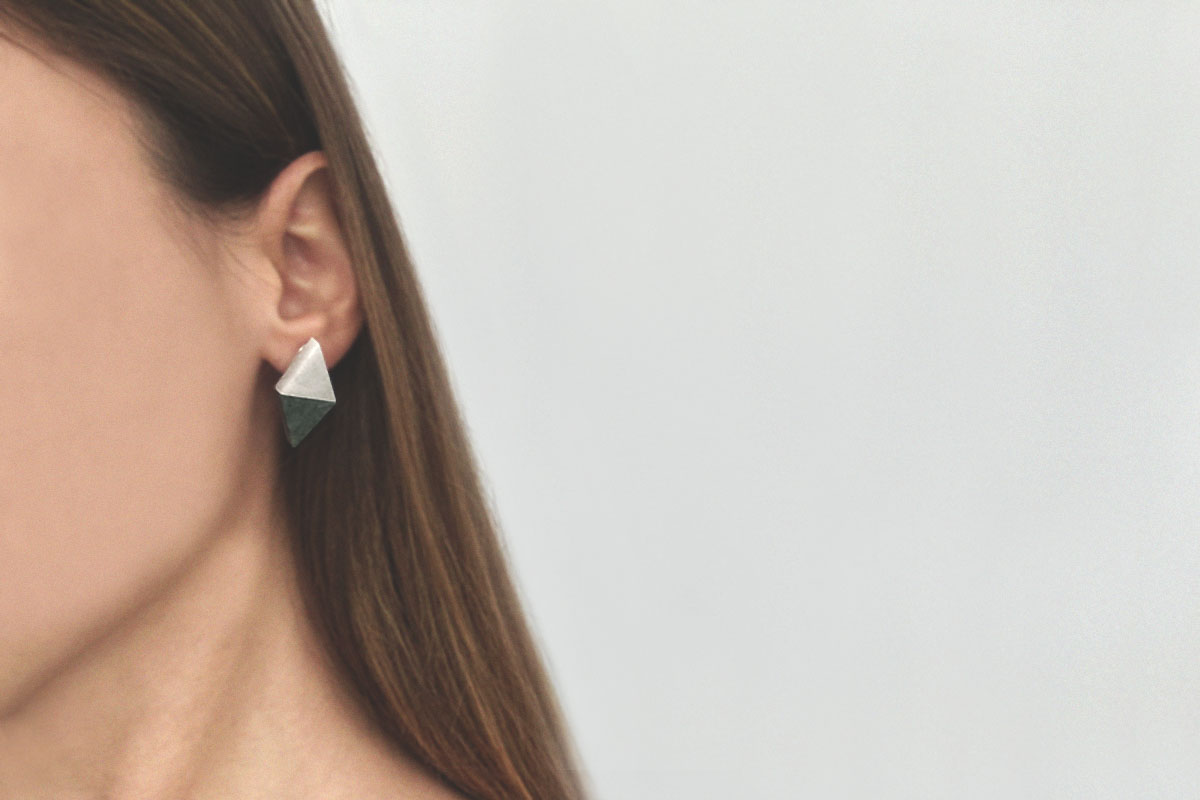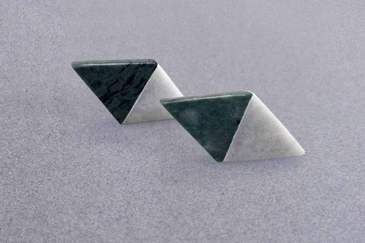 Δύο μαρμάρινα σκουλαρίκια με κούμπωμα από ασήμι 925.