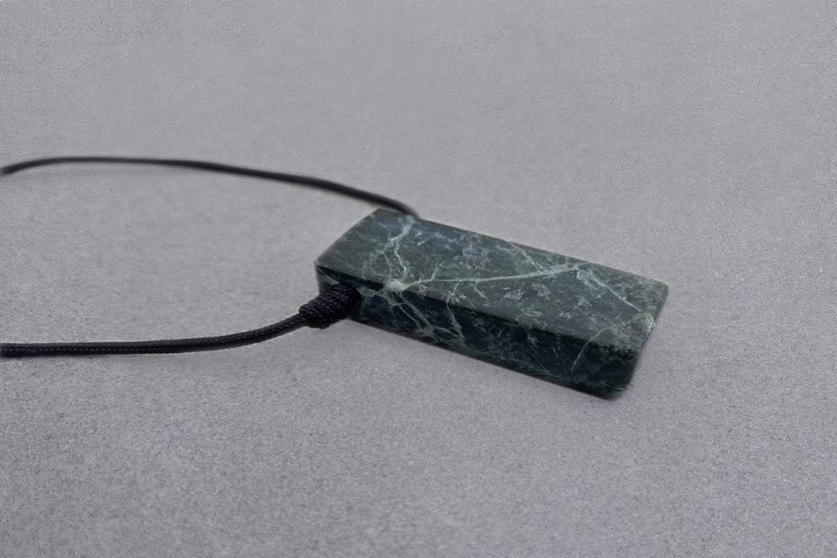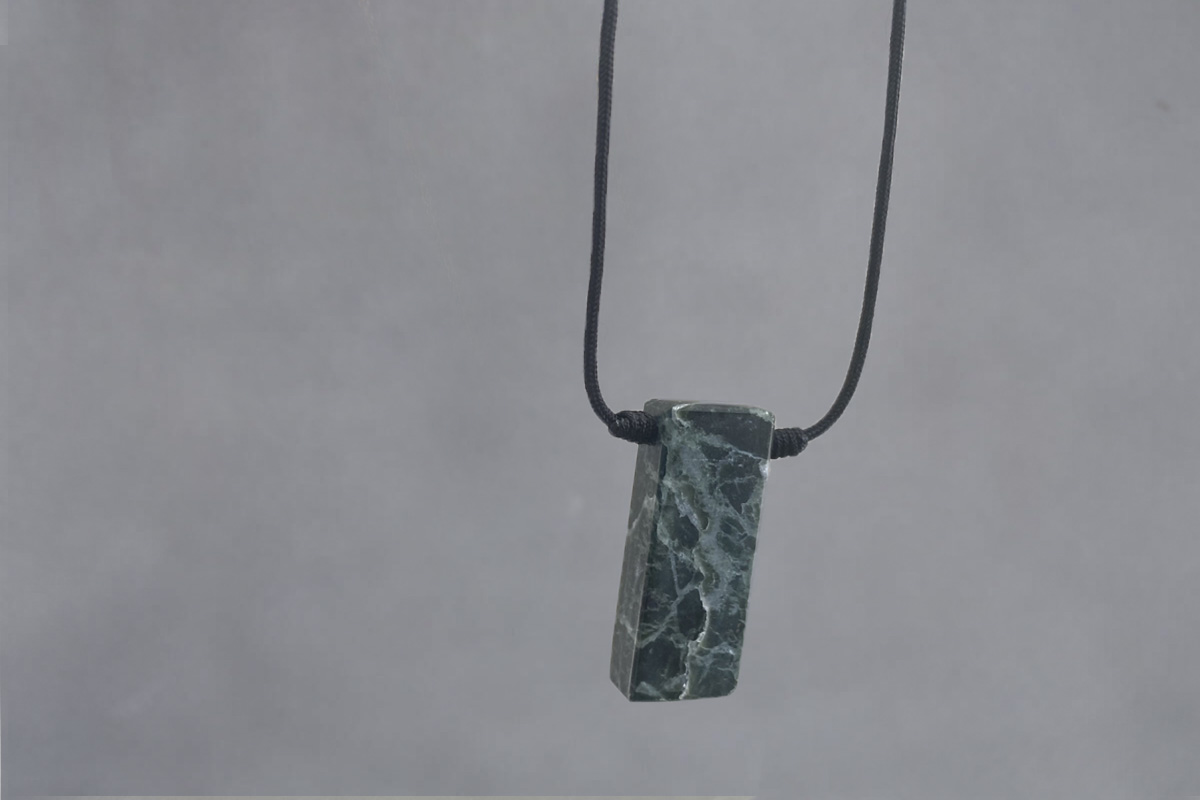 Ένα μοναδικό κομμάτι μαρμάρου που κρέμεται από μαύρο κορδόνι και προσαρμόζεται στο επιθυμητό μήκος .